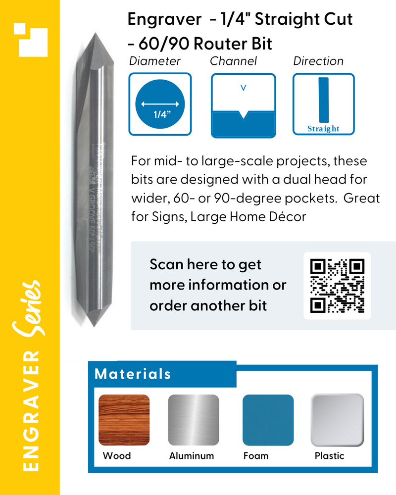 For mid- to large-scale projects, these bits are designed with a dual head for wider, 60- or 90-degree pockets. Great for Signs, Large Home Décor.