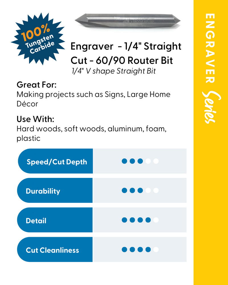MakerMade Tip 1/4" Straight Cut - 60/90 Router Bit