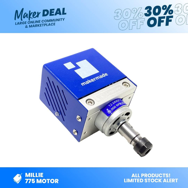 MakerMade Millie is engineered to provide precise and efficient milling capabilities for professionals and DIY enthusiasts alike. Equipped with a 775 motor, this spindle motor delivers consistent and reliable performance, ensuring smooth and accurate results every time.